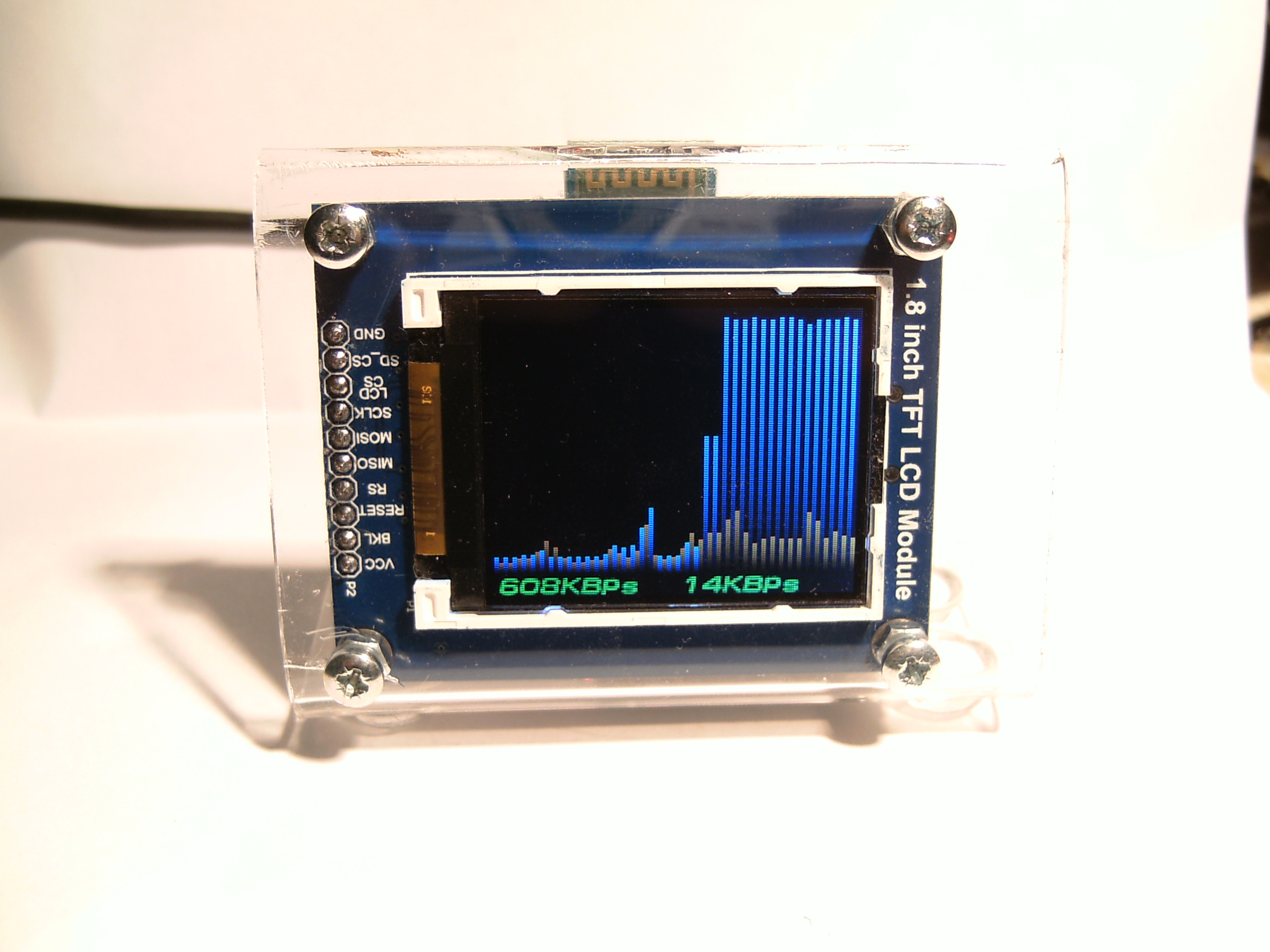 Whenever I want to see why a download is going a little slow or getting lag on an online game I’d have to log in to my routers web page or SSH in to see if its someone else in the house downloading/uploading, the net connection going wonky or just the server, this was a bit annoying to do, so I made this device to constantly show network statistics.