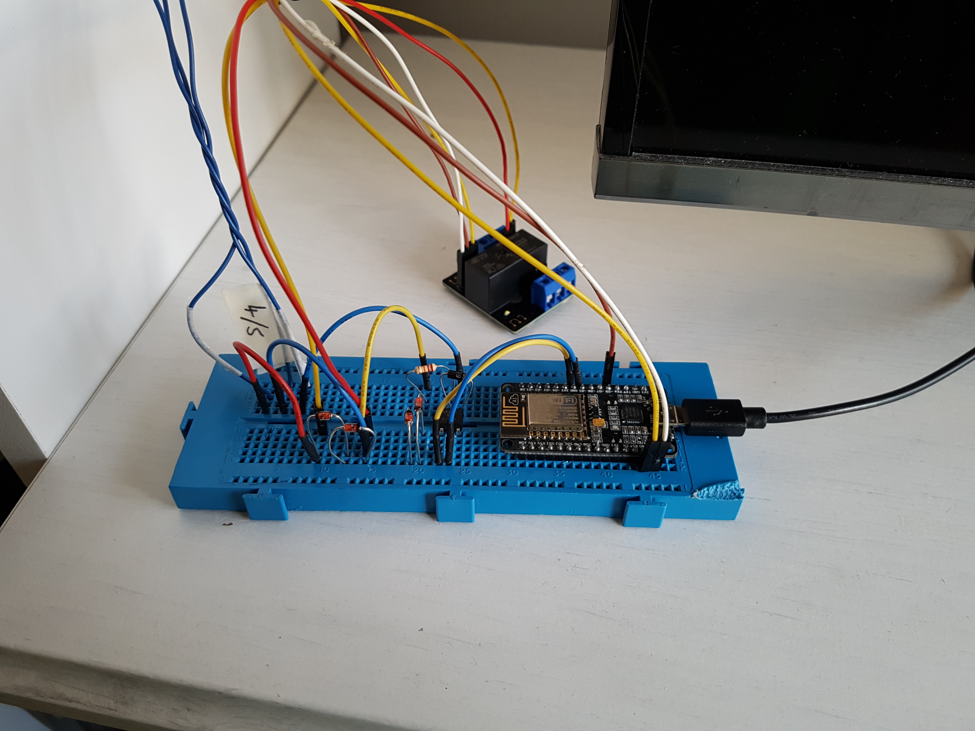 A prototype was built using a NodeESP board, an opto-coupler hooked to the ring input and a relay to the lock solenoid. It worked, the ESP could detect buzzes through the opto-coupler and the relay activated the door lock solenoid. So let’s get the real thing designed so that it fits neatly inside the intercom housing!