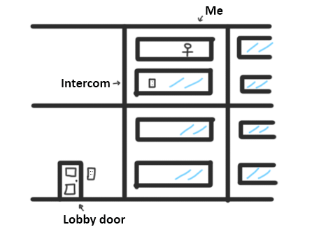I recently moved into a two-floor apartment with a door intercom system on the bottom floor for the building lobby area. Since I’m normally upstairs I wanted to have some way of being able to unlock the door without having to rush down to the intercom when the postman rings. Being able to unlock the door remotely and knowing when someone rings when I’m out would be pretty neat too!