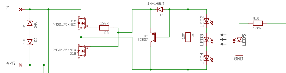 I didn’t want the intercom system electrically connected to the controller, so some opto-isolation was needed. Using the same opto-coupler and relay design from the prototype would have been too easy, so instead I made my own isolation with a bunch of LEDs! LEDs can also act as photodiodes and produce a small current when exposed to light, probably not quite as well as a purpose-built photodiode, but well enough for what I needed and much cheaper.
