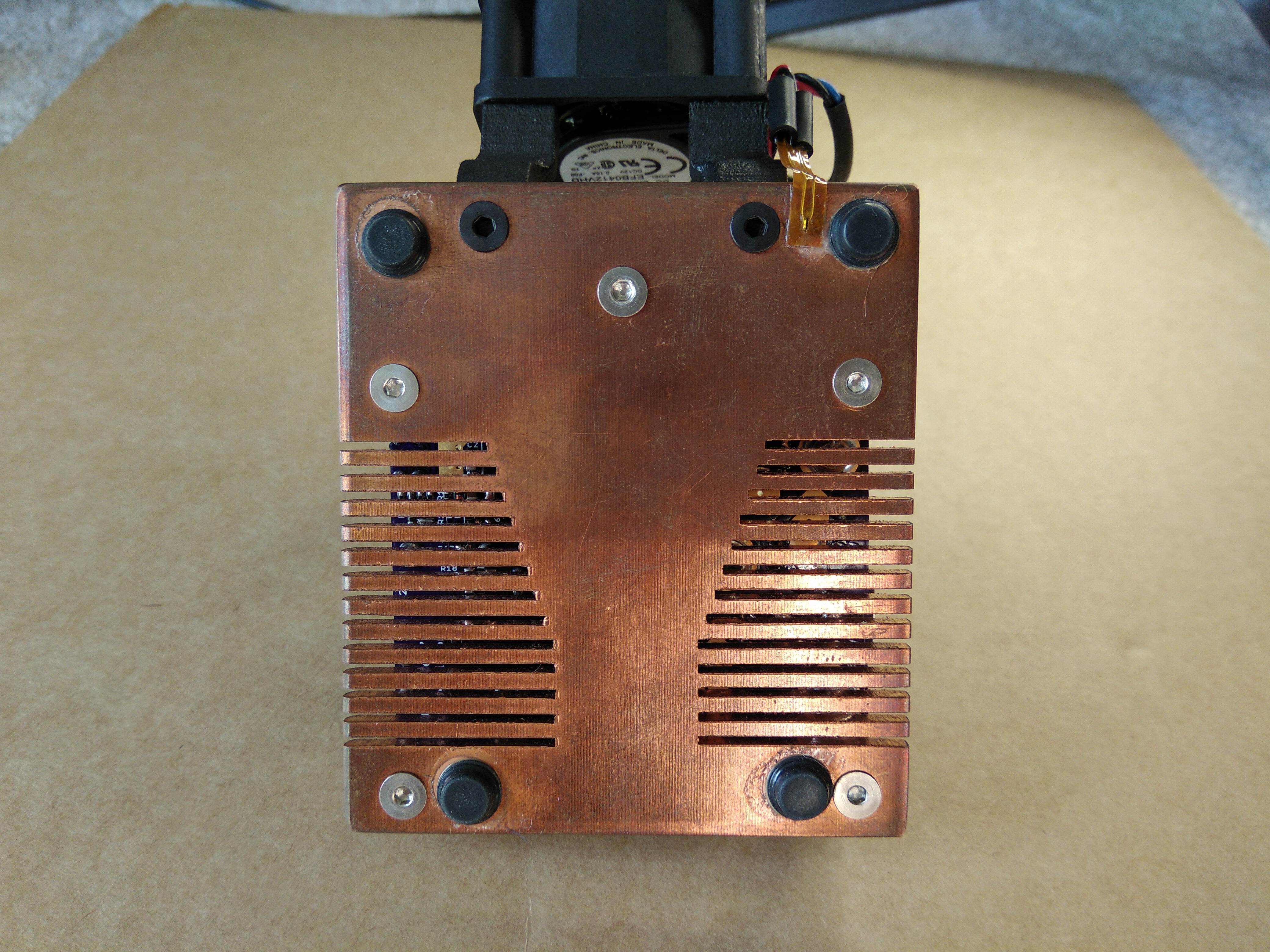 After some testing it turns out that the new heatsink isn’t much better than the older one. It takes longer to heat up since it’s a massive slab of copper with high thermal conductivity and thermal capacity, but its design is not great at passively getting rid of heat.