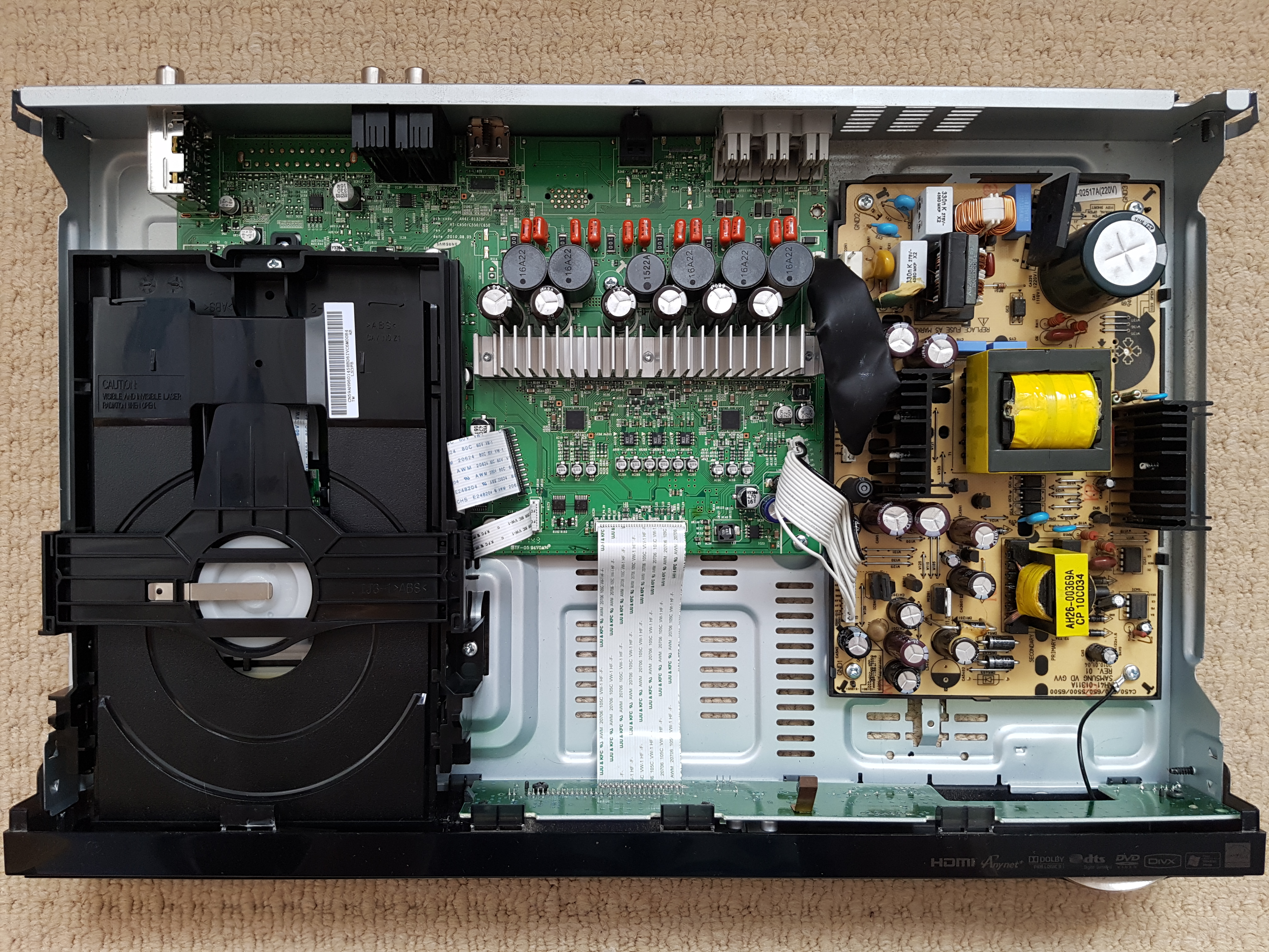 My Samsung HT-C460 home cinema had started to go into protection mode – it would display “PROT” on its screen and turn off after a few seconds. It’s an old cinema system with a DVD player that hasn’t been used in years (I only use it to feed the TV audio through), but I thought I’d try having a go at diagnosing, fixing and getting some more life out of it.