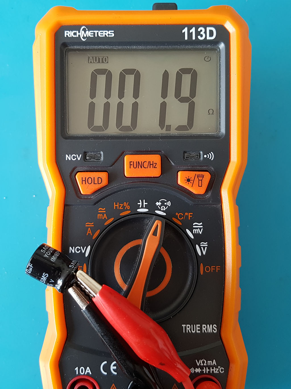 Since all of the capacitors appeared to be ok, I removed the 7905 -5V regulator and tested it thinking that it might have developed an internal short to ground, but it was working fine. With the regulator removed I hooked up a bench PSU set to 5V with 300mA current limit to the -5V rail (Black to -5V, Red to GND, connected backwards to make a negative voltage as long as you use an isolated power supply). Something was still pulling a ton of current even though the power supply board was disconnected from the main board. Well, the only thing left was the 470u output capacitor.